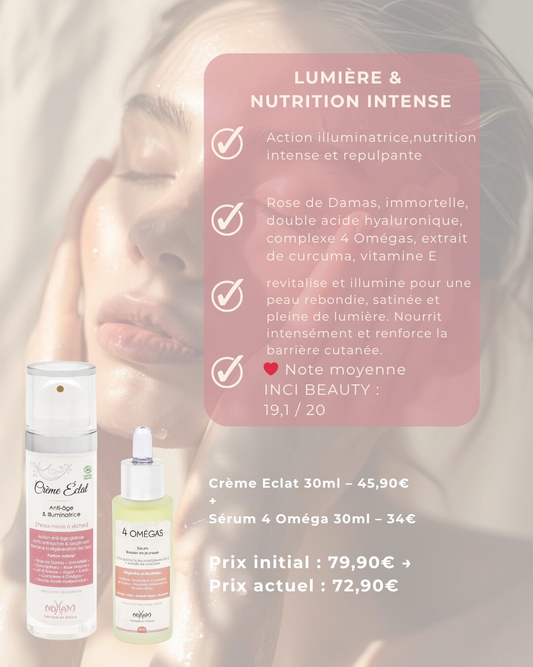 Crème Éclat 30ml – 45,90€ + Sérum 4 Omégas 30ml – 34€
